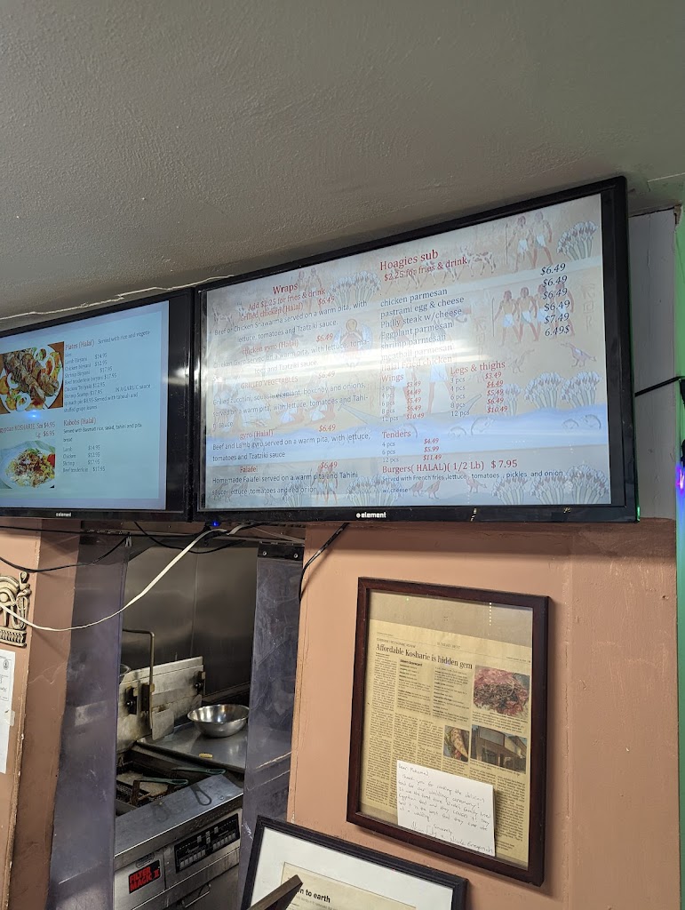 Got the falafel wrap and the kosharie plate. Falafel wasn’t very good, super dense and tasted like it was cooked in old fry oil. Kosharie was good, the onions were a great touch, but overall it was kinda just a pile of noodles, rice, and beans with a basic red sauce. Maybe it’s a lunch place.