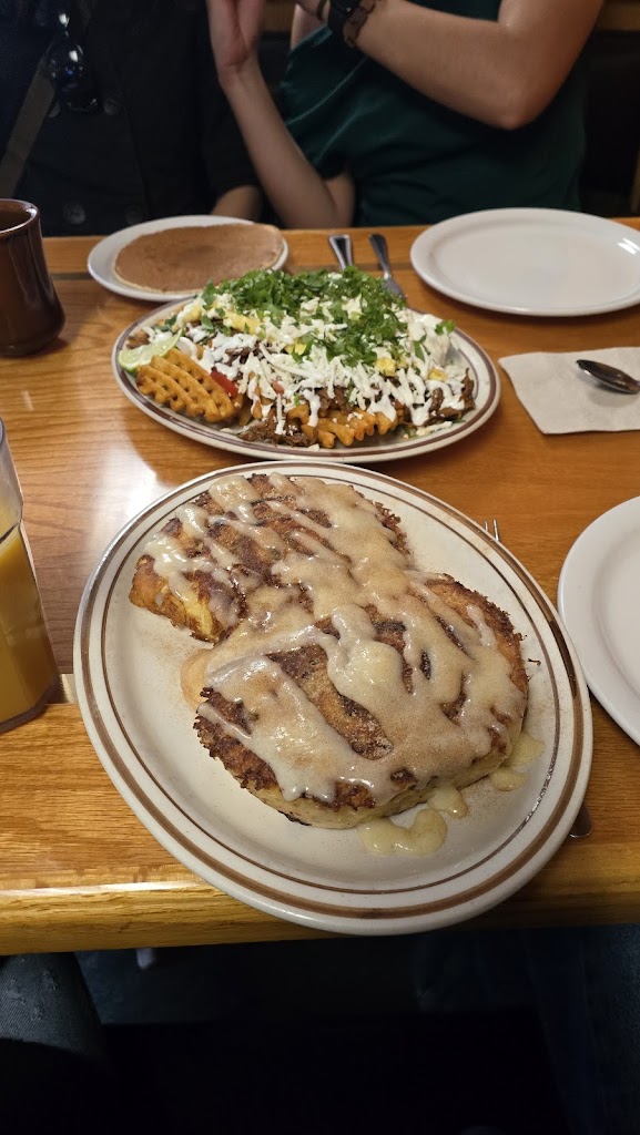 Our first time visiting, and we had fantastic service on a busy Sunday. Wish I could remember our waitress' name because she was amazing. At her suggestion, I ordered the cinnamon roll French toast, which came out mushy and raw in the middle. She was very apologetic, took the entire meal off the bill, plus gave us two free cinnamon rolls for the trouble. My husband had the Southwest skillet and absolutely loved it. We will go back and try another meal there after this great customer service experience!