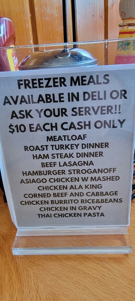 Always great food and equally great service. Traditional diner favorites along with a selection of Mexican dining options. Daily specials; generous portions; a variety of soups and chili are always available. Warm maple syrup with select breakfast items. A selection of excellent portion controlled ‘freezer meals’ are available to take away and ‘heat and eat.’ This establishment is almost always quite busy and parking maybe hard to find at times.