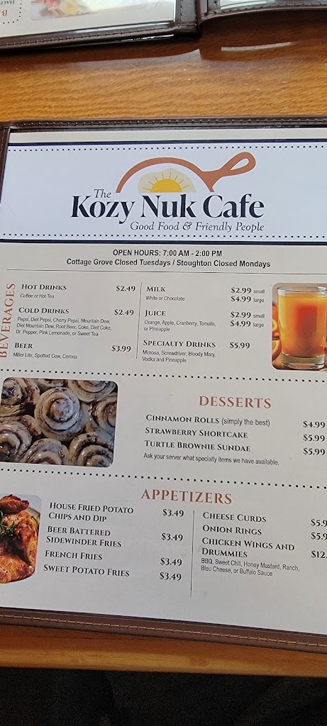 I love Kozy Nuk! The service is always friendly, the food is great, and I am excited to try something new each time I go. The Farmer's Skillet was so good... I will definitely have it again sometime soon!
