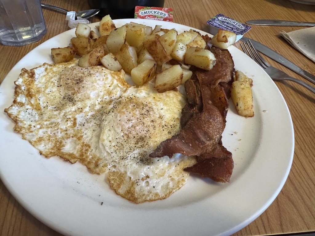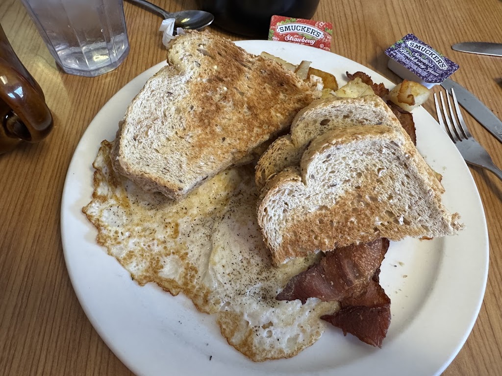 Excellent! Fantastic pancakes, fresh eggs, and a cinnamon roll the size of your face! Great, friendly service. Fast turnover. If I were local, I’d eat here every day.