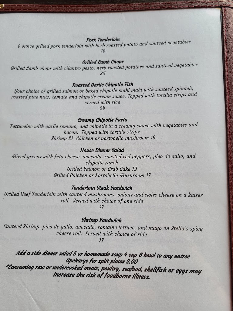 Absolutely wonderful food, very friendly staff, small establishment doing everything it can during the covid issue... I did the steak and scallops, my wife did the portabella and steak dinner, excellent!
