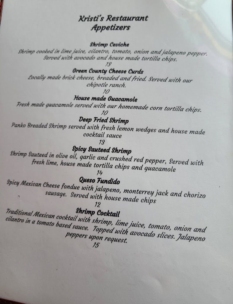 I am local and my family has loved Kristi's for years! Some of our favorites are the steak burrito, ahi tuna, chicken taquitos, and of course the margaritas! Recently, Kristi helped me make my husband's birthday even more special. It is great to have a wonderful restaurant so close by! We appreciate everything they do for our community.