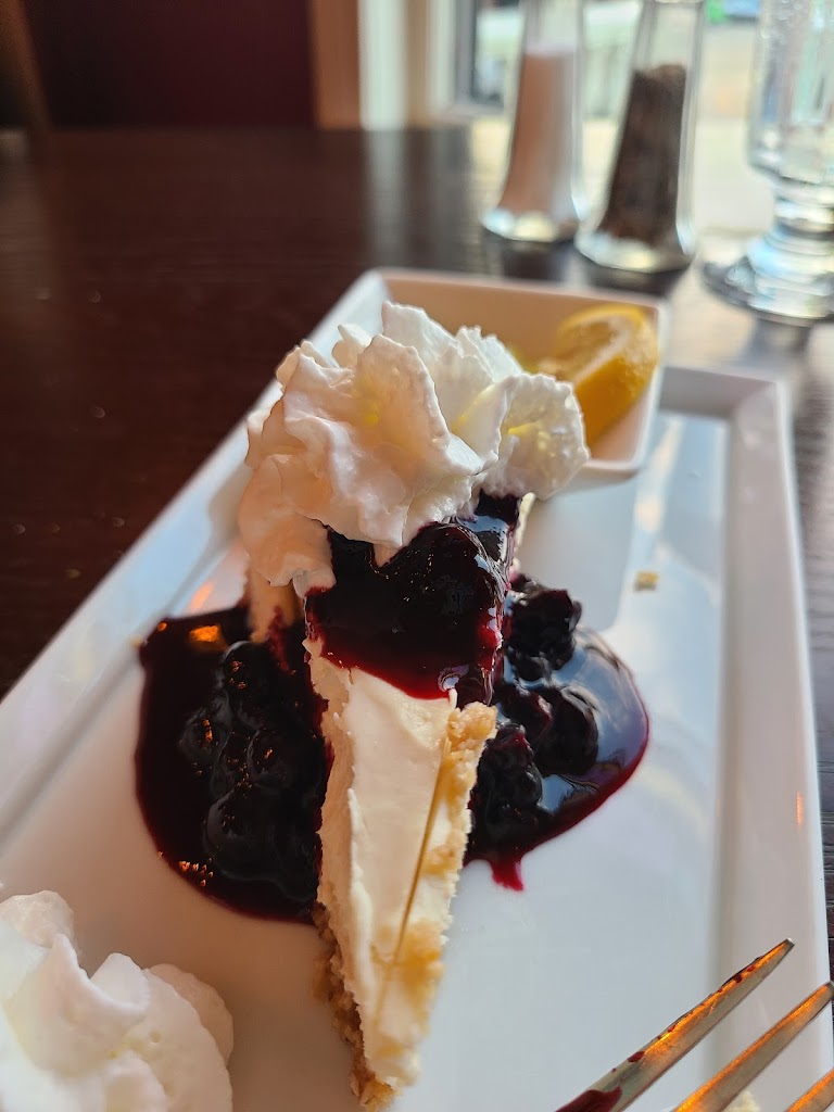Romantic atmosphere. Outstanding menu selection. Really delicious Salmon, Wiener Schnitzel, Lobster Bisque and Lemon Ginger Cheesecake. Very friendly, professional service. Great location. We'll be back!