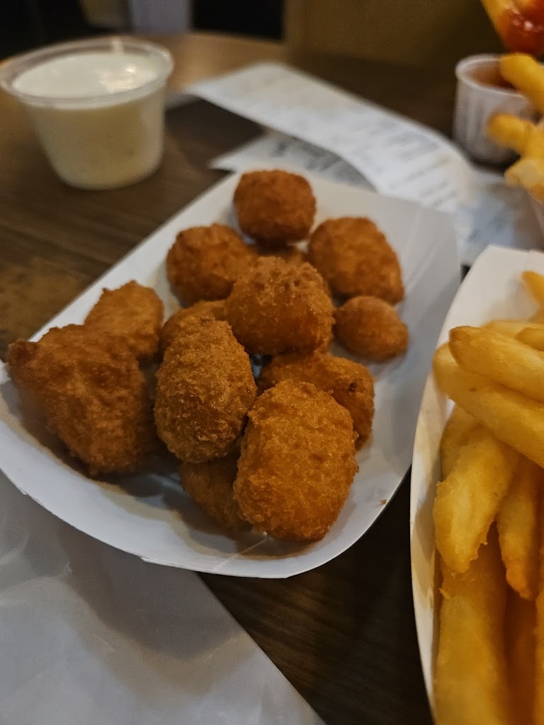 I had a cup of coffee and the cheese curds the garlic cheese curds and they were delicious perfect crunch perfect portion the coffee was great. the service was amazing friendly people attended to me right away. definitely looking forward to visiting someday again. but definitely friends and family when you stop in don't forget to get those cheese curds.
