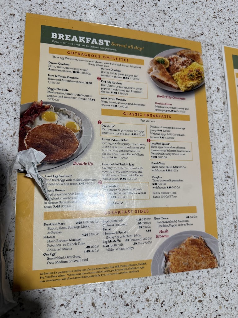 The one few KwikTrip that has a sit down diner restaurant with breakfast.