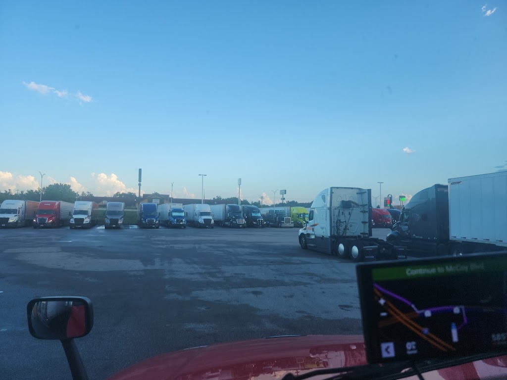 Plenty of parking spaces. You can drop your trailer for a few hrs here. Walmart is a quarter of a mile away. I was able to get a haircut down by the Walmart.