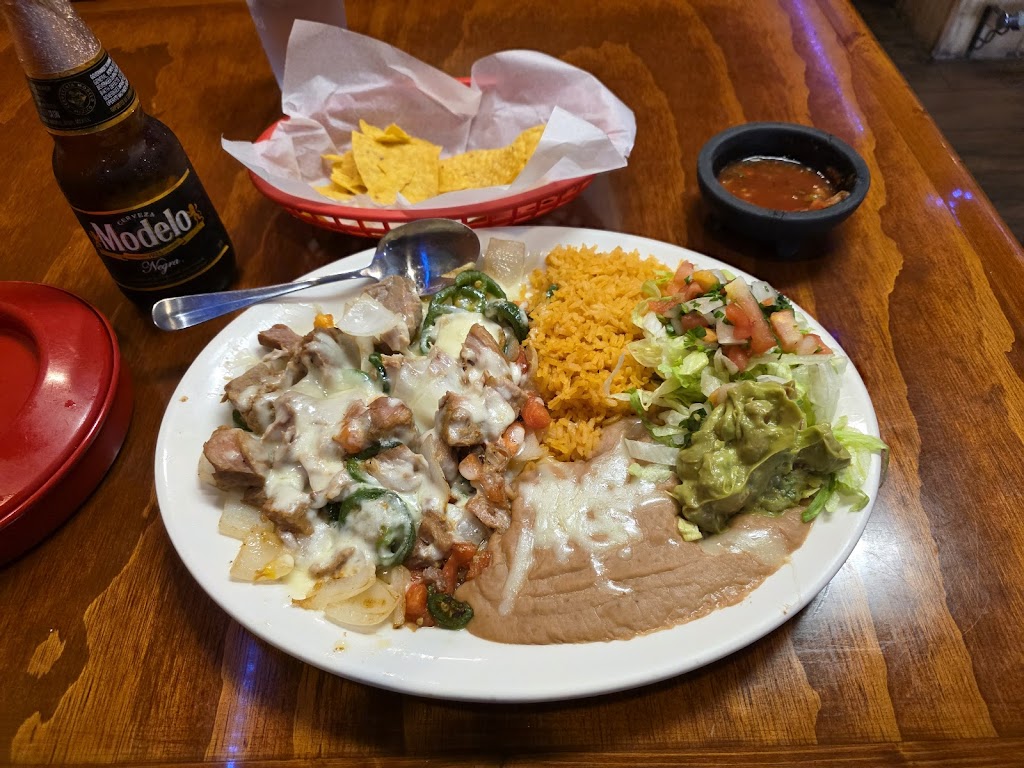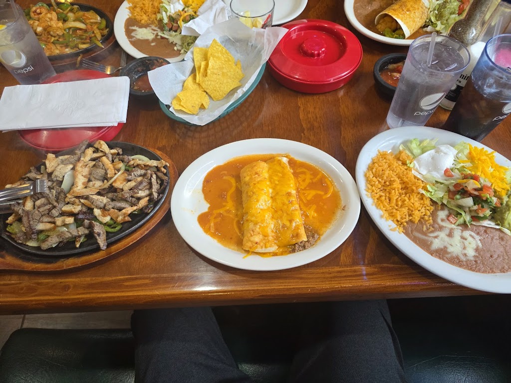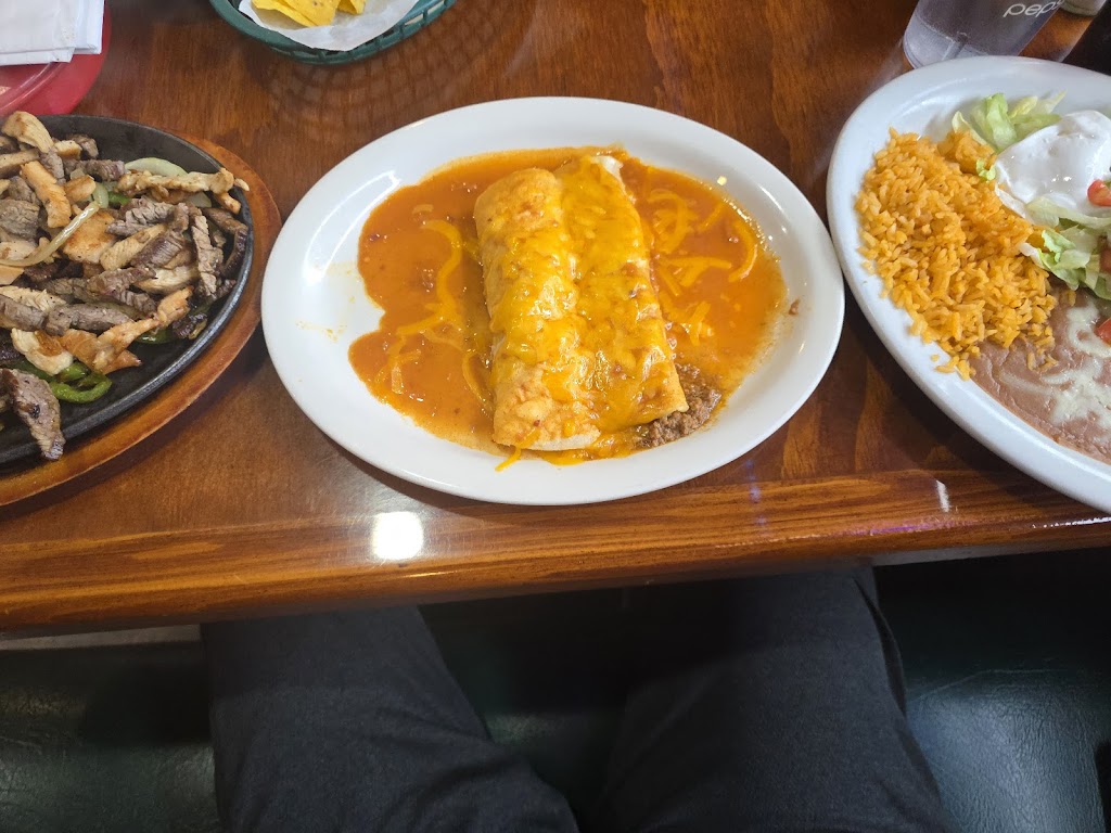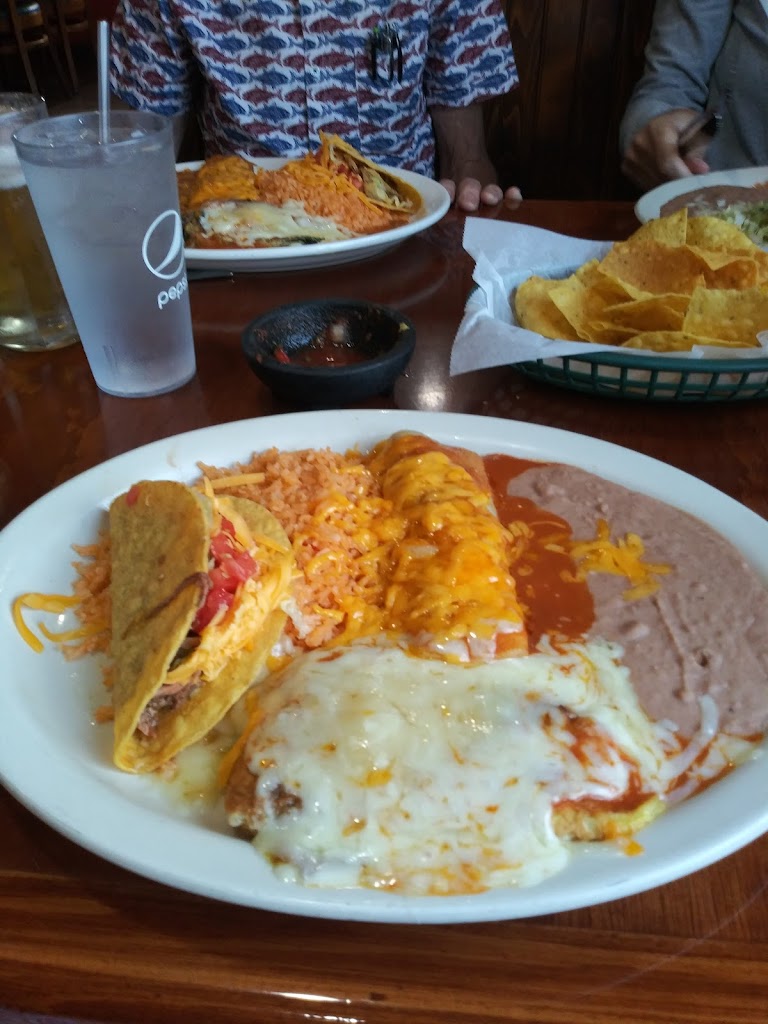 I had enchilada taco and chili relano and asked for whole beans instead of frijoles and they actually had them the food was great and I ate way too much the portions are huge they have a bar as well. I went in again for breakfast and had steak and eggs, which was amazing. It was at least three scrambled eggs they’re home. Fried potatoes were some of the best I’ve ever had. Not sure what they season them with but they had green peppers and onions as well. Big chunks of potatoes. I couldn’t eat it all.