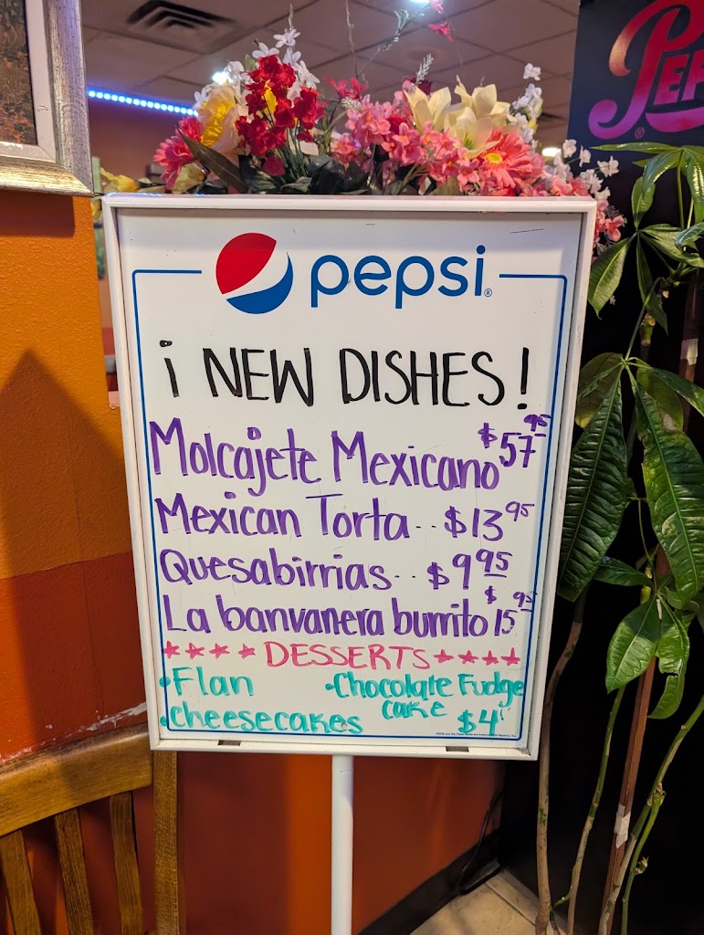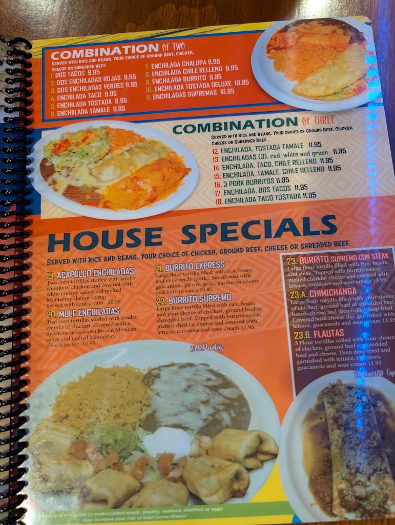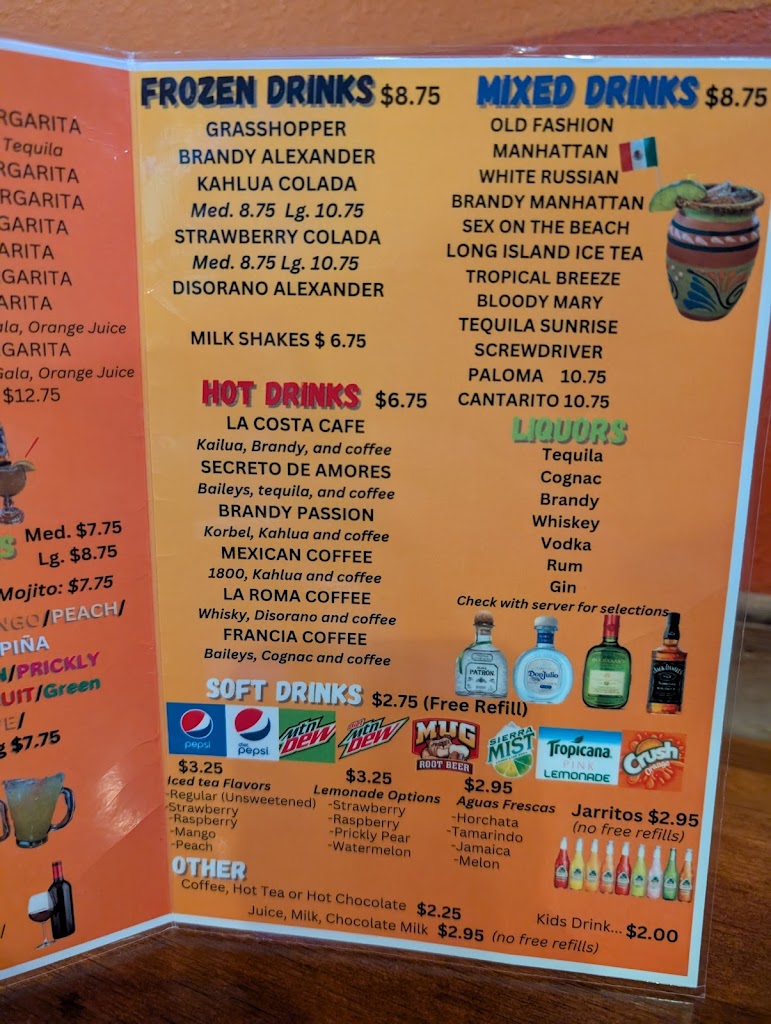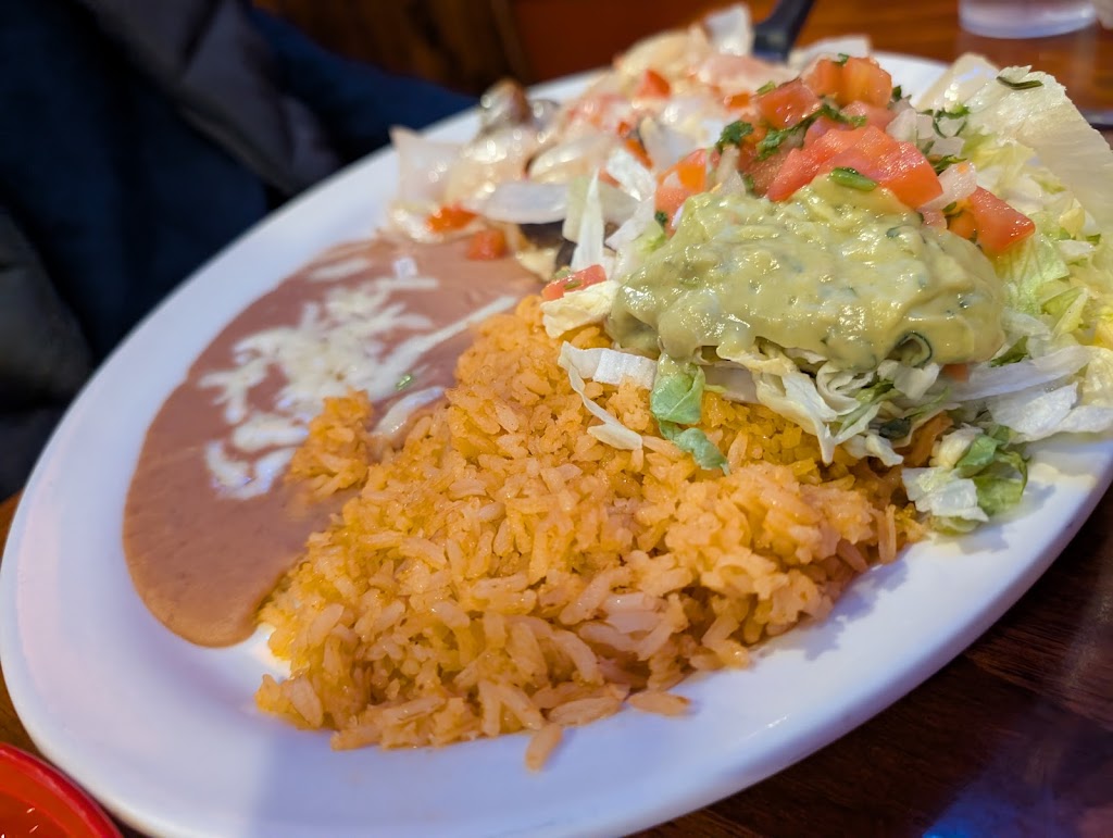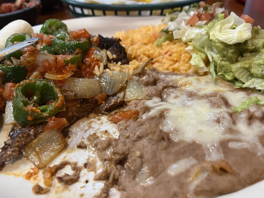 I had enchilada taco and chili relano and asked for whole beans instead of frijoles and they actually had them the food was great and I ate way too much the portions are huge they have a bar as well. I went in again for breakfast and had steak and eggs, which was amazing. It was at least three scrambled eggs they’re home. Fried potatoes were some of the best I’ve ever had. Not sure what they season them with but they had green peppers and onions as well. Big chunks of potatoes. I couldn’t eat it all.