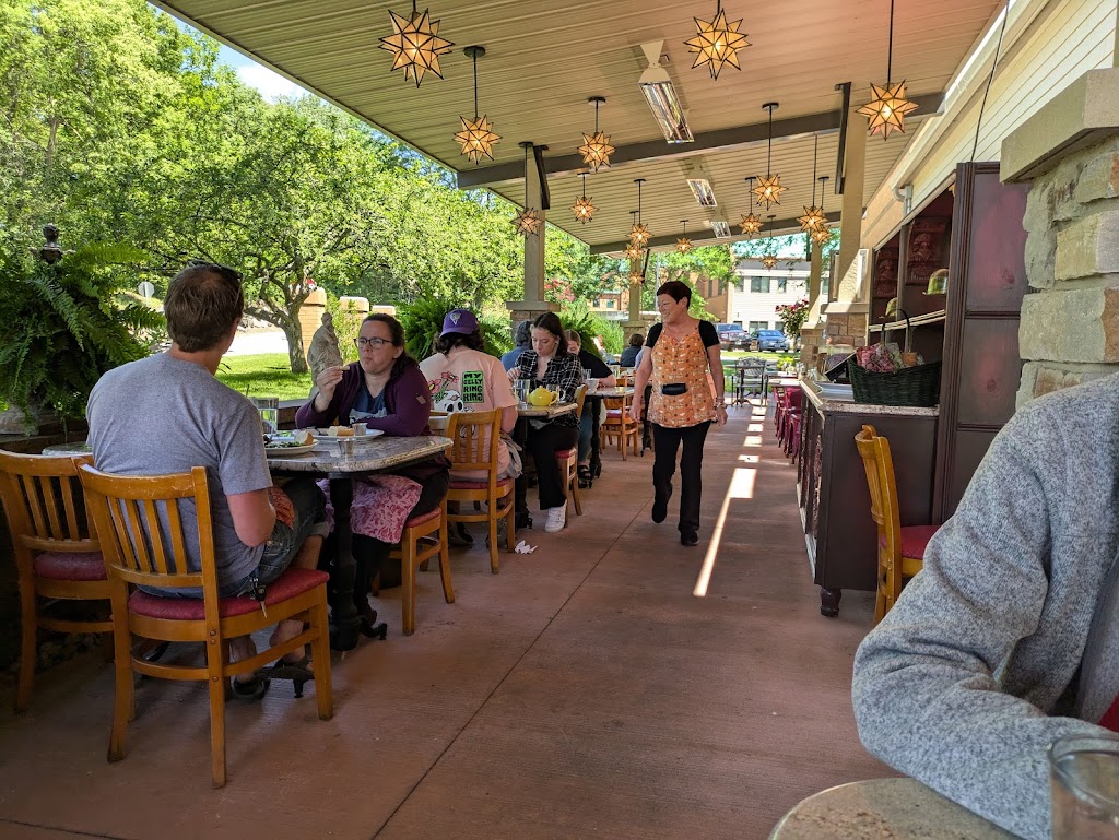 What a classic and beautiful place to have a meal. Our waiter was amazing and attentive. Plenty of outdoor seating and indoor seating when we arrived at 10am. The only annoying thing was the train that came by and blew it's horn.