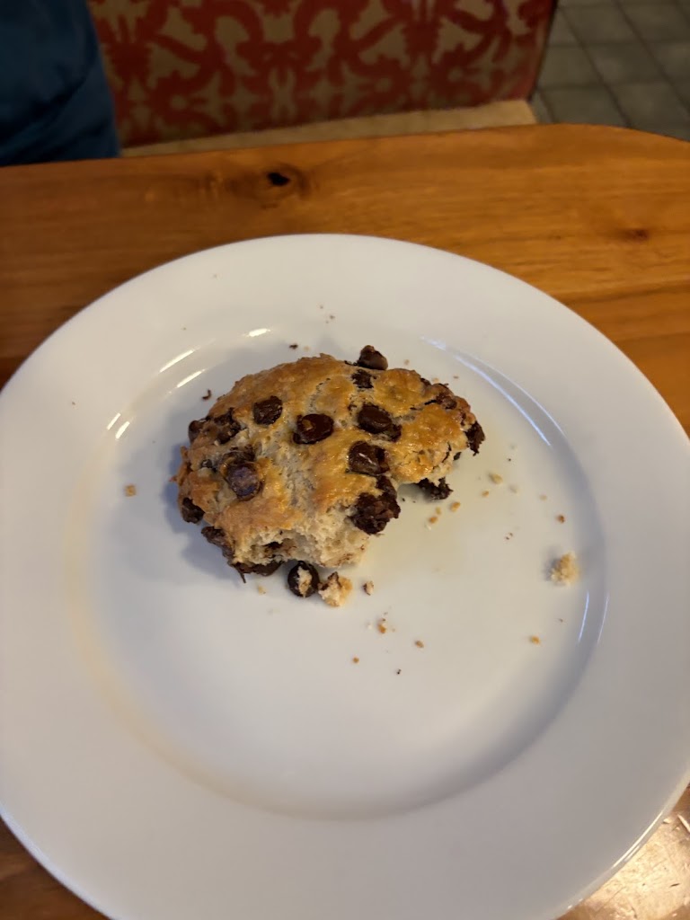We had a delicious blueberry iced tea, cheese danish, and chocolate chip cookie! Beautiful atmosphere!! Thank you!!
