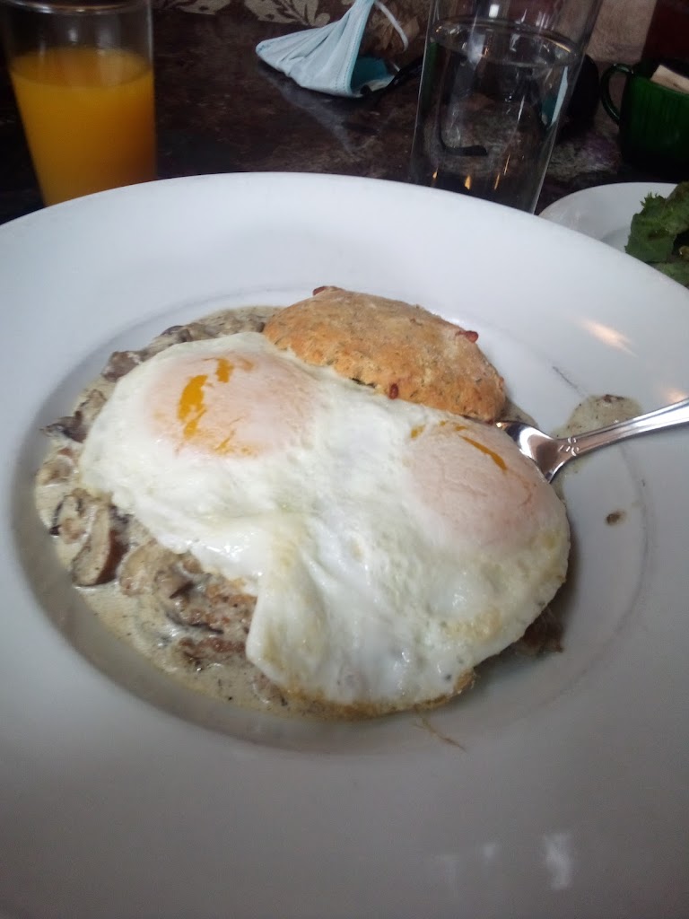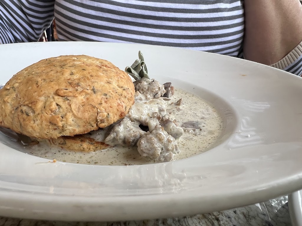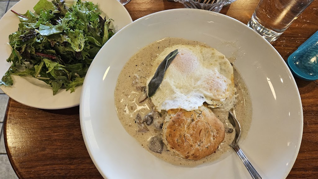 Excellent everything but especially food. I had biscuits and gravy- homemade sausage and homemade rosemary and d thyme biscuits DELICIOUS! Their quiche is also excellent. Adorable teapots.