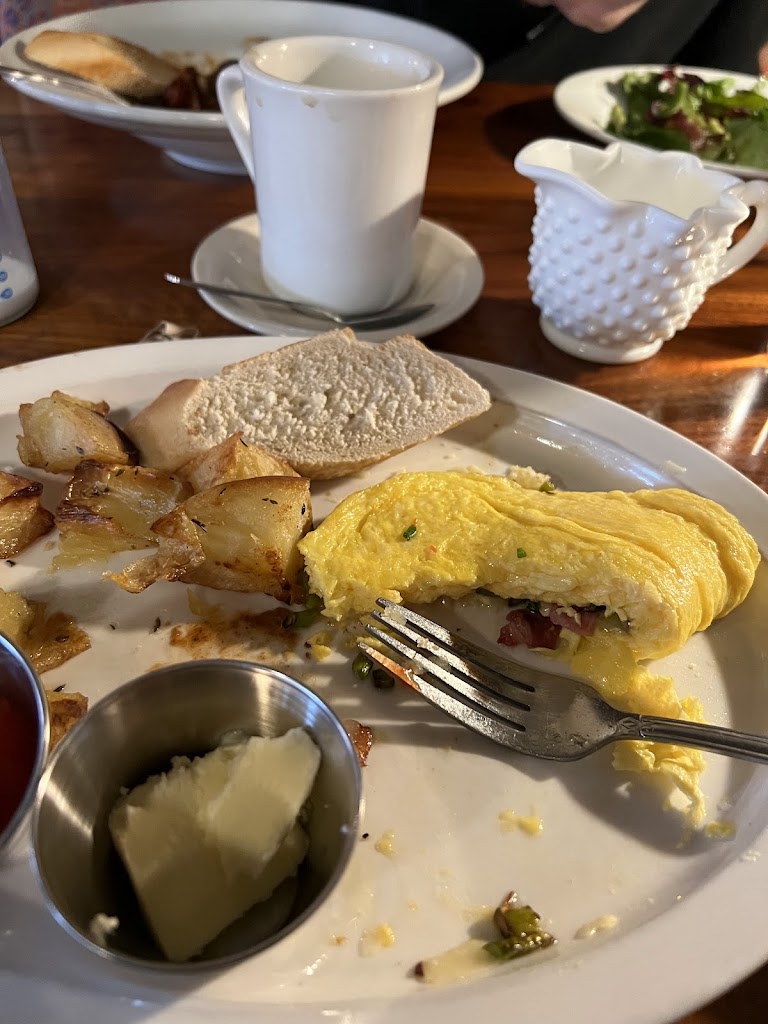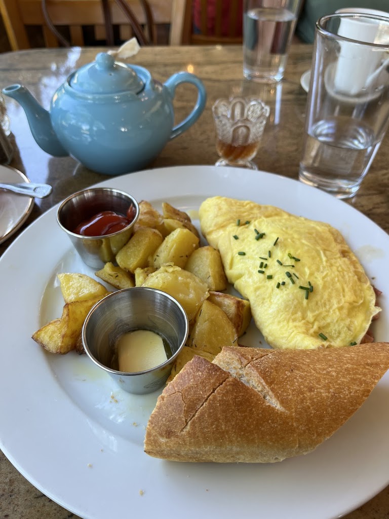 Cozy atmosphere! Food was good. We got eggs Benedict and an omelette. I give a 5 on presentation and 4 on taste (except the bread and butter were 5 stars) parking is near impossible on Saturdays at 10 am.