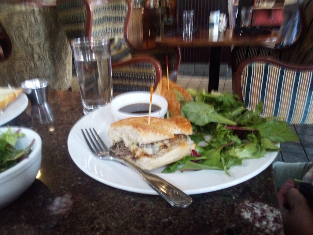 To start, I will go back to see if they are able to bring up this score. We sat outside and it was a beautiful area! We walked past the bakery section that was fantastic to look at and I enjoyed the morning roll. My wife had the berry salad and it was beatiful. She said she would order it again. I had the French Dip and it was not. The roll was had a crust that cut my gums. The dip was too salty and not savory. Service by the waitress was terrible. If it was not for other staff coming to help us we would have not gotten our food and our drinks finally came after are food was half eaten. I ordered the cold green mint tea and sent it back as it did not taste like green tea or mint. I just had luke warm water with no ice. Not sure why they serve it that way. This seems like a nice place and I hope it is much better the next time I go.