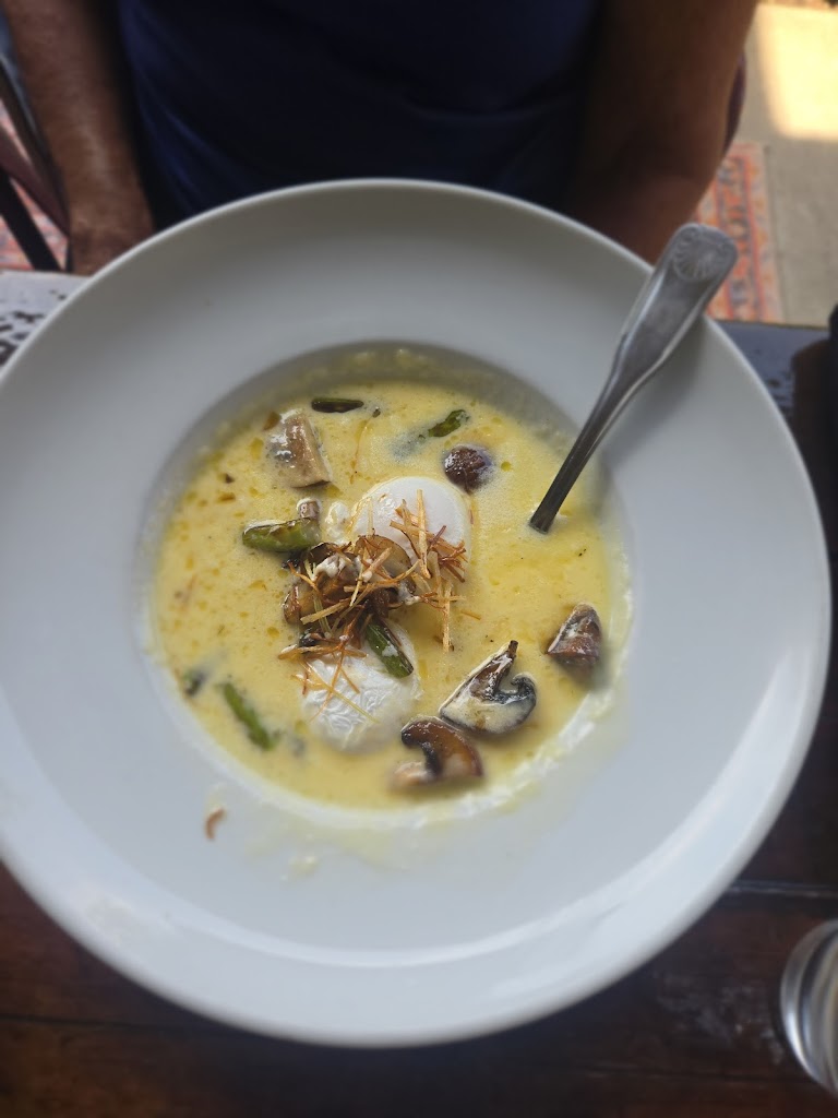 Lovely place, food was good. Loved their idea of bread pudding using croissants. Very smart. We were there at lunchtime. I wish they had some way of absorbing the sound of clanging dishes. The ambiance would be better if it wasn't so noisy.