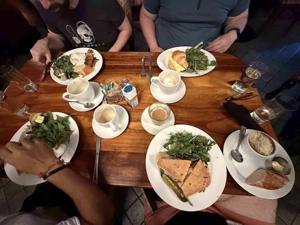A quick client lunch, sandwiches were fresh, served with a healthy side salad. Service was great, especially for how packed it was.