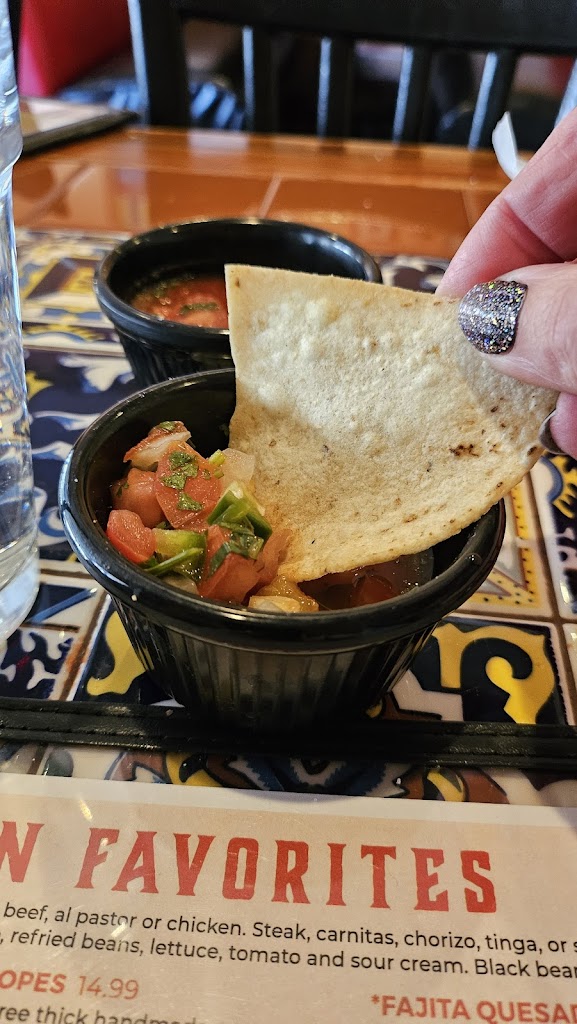 The queso dip is well worth ordering, it’s very large about 4x the amount of salsa and easily got us through 2 baskets of chips. The chimichangas felt as though they needed the cheese/queso on top or some type of sauce/cheese on top, which is why the large amount of queso came in handy.The tortilla soup was creamy and good, but just didn’t hit the right taste for us all together. The tacos, were tacos, it didn’t have anything too special to set it apart. That said it was all very well priced and I am full and happy.