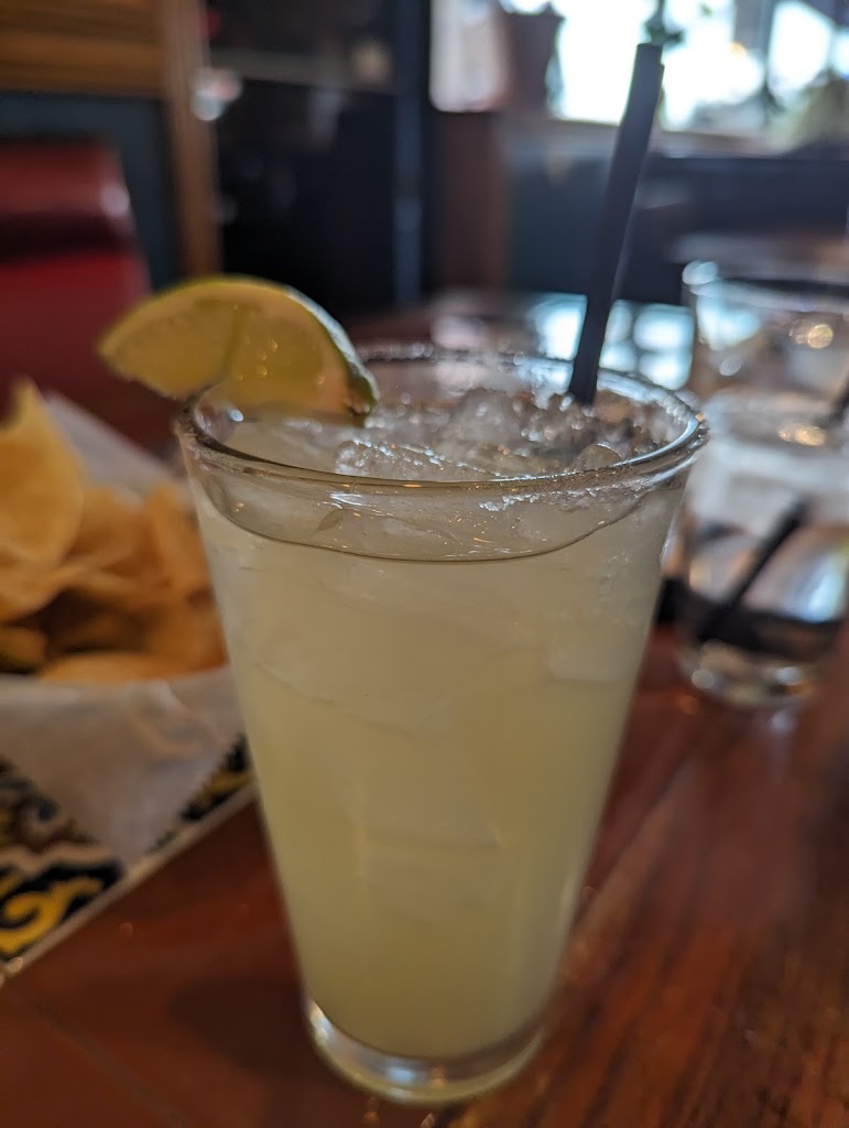 The chips and salsa was great, two salsas, one mild, one hot, both good. The margaritas were good, a little too sweet for me.