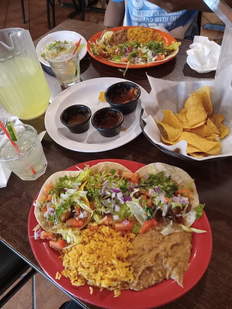 This was our first time here. We were greeted with a friendly smile and seated immediately. Chips and salsa were delivered to the table. Ordered a half pitcher of original margaritas on the rocks with the guacamole. Delicious! I ordered the steak tacos and a side of beans and also the mole sauce. Absolutely amazing! Husband ordered the enchiladas which were very tasty. Definitely a neighborhood gem. Our waitress was very attentive. We will return!