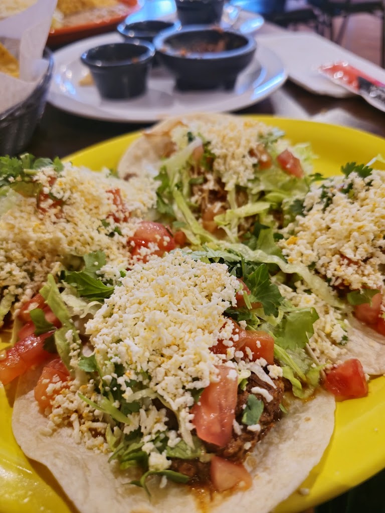 The food was just not flavorful and the chicken tacos were dry, chicken especially