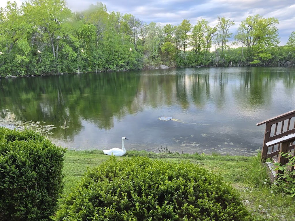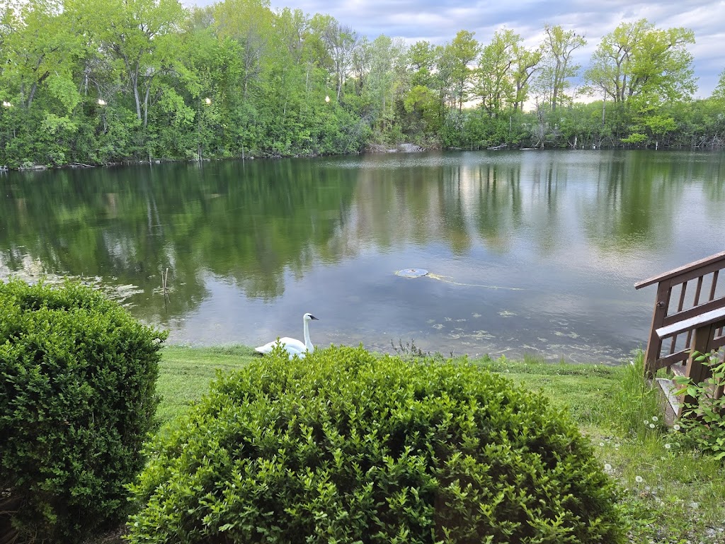 Swan, ducks, green heron and a place to view the water. A deck to sit and visit with friends while enjoying Margaritas.
