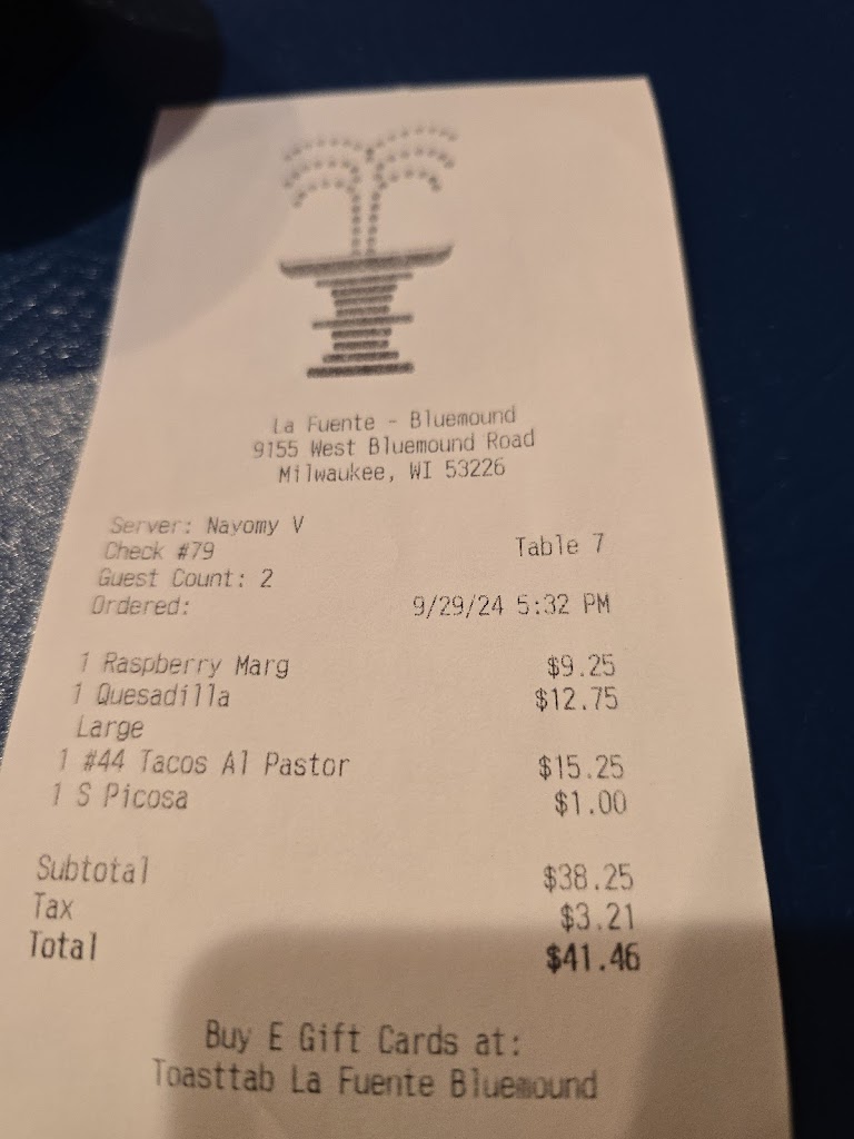 Used to love going to La Fuentes on 91st and Bluemound but they definitely aren't my first choice anymore. Went there after working Brewers opening day with a few coworkers like we always used to and was disappointed in a few things... Now they're charging for chips and salsa after the first basket (before chips and salsa was unlimited complimentary), the place and decorations need upkeep, and the atmosphere just felt off and not as fun as it used to be. Even the lighting felt almost intrusive and like they just wanted you to eat and leave in a hurry. Not to mention their hours aren't conducive to making more money since they close so darn early every night. I hate to say it but we'll be finding a new place to visit after work from now on. On a good note, our waitress was extremely sweet, bubbly and attentive and deserved her well-earned 22% tip.