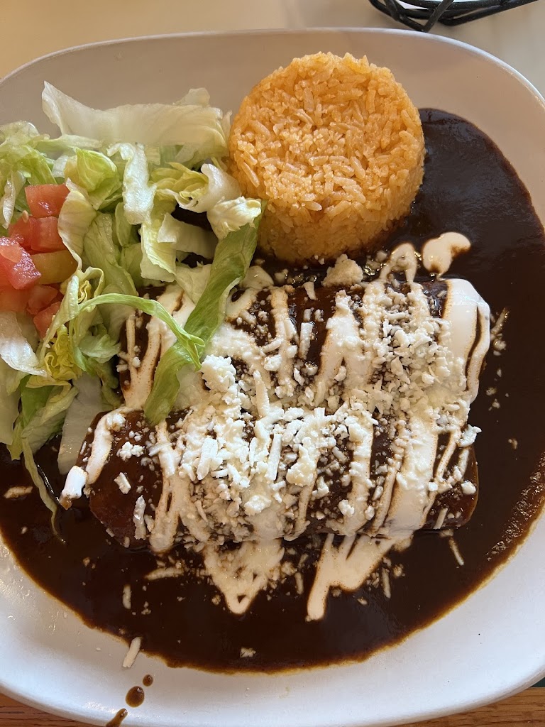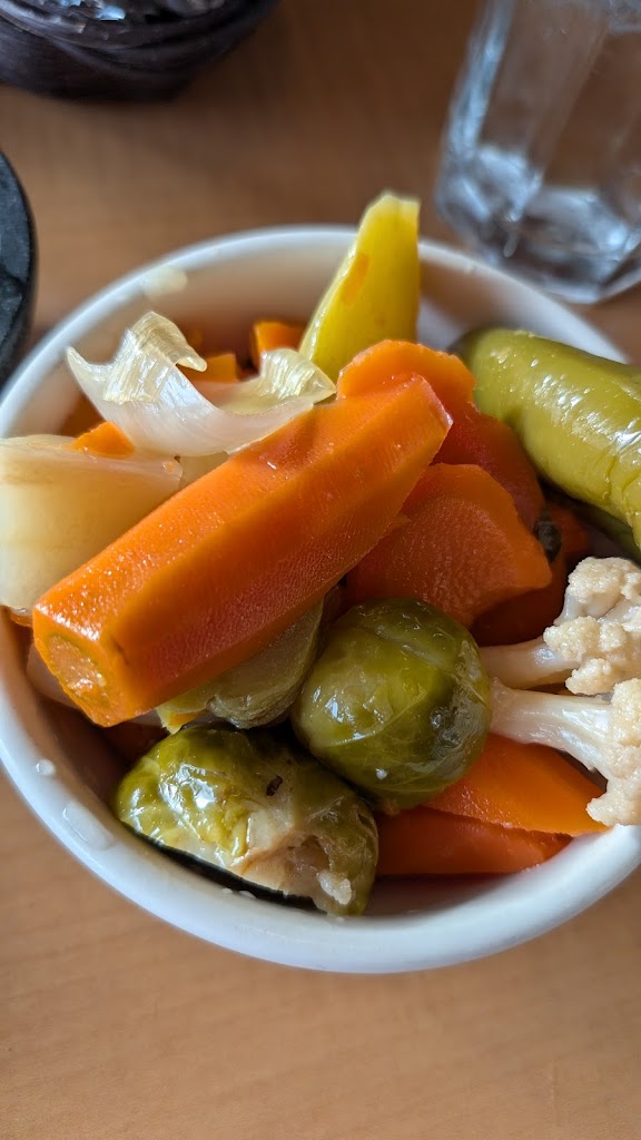 Love the mole chicken enchiladas, chips, salsa and the tasty pickled style vegetables they offer. Brought friend who got steak dish. Tasty authentic Mexican food. Small room, sometimes it is cold from the door opening.