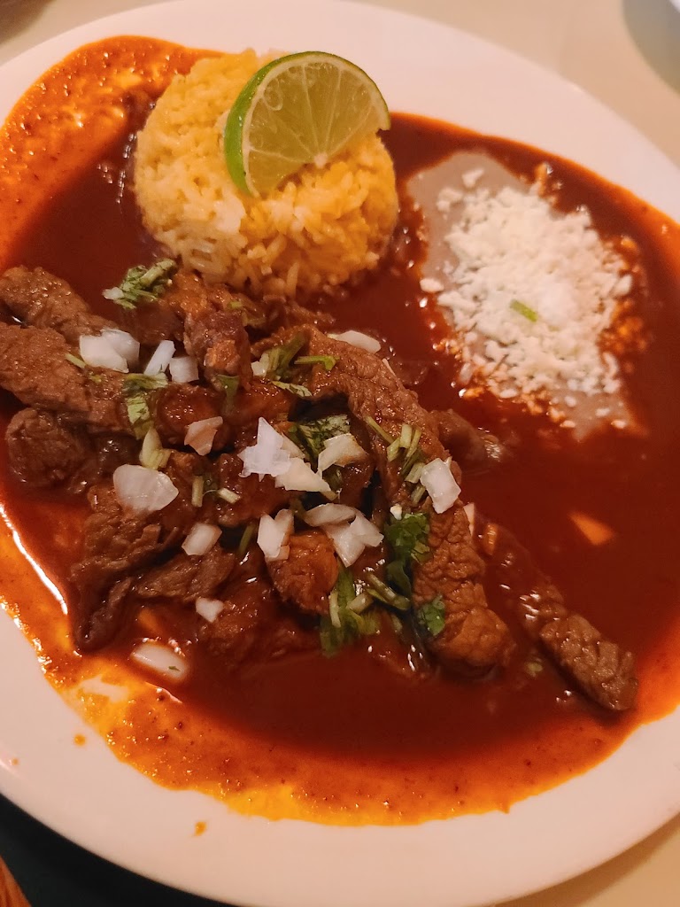 La Mestiza has been open for around 20 years. They've had the same music and menu for the last 30. No need to change what works. Food is consistently served hot and delicious. Nachos are fresh fried served with red and green sauces. The green is cool and velvety and the red is more tart and smoky. Both are delicious. Chilaquiles with carne asada are excellent here. Special dishes (off menu) like carnitas, cochinita pibil, y chamorro de puerco are also recommended. Service can be as good as found in more upscale restaurants, and it can also be quite lacking at times. Small bar is a nice option. La Mestiza is highly recommended for catering too.