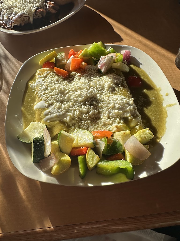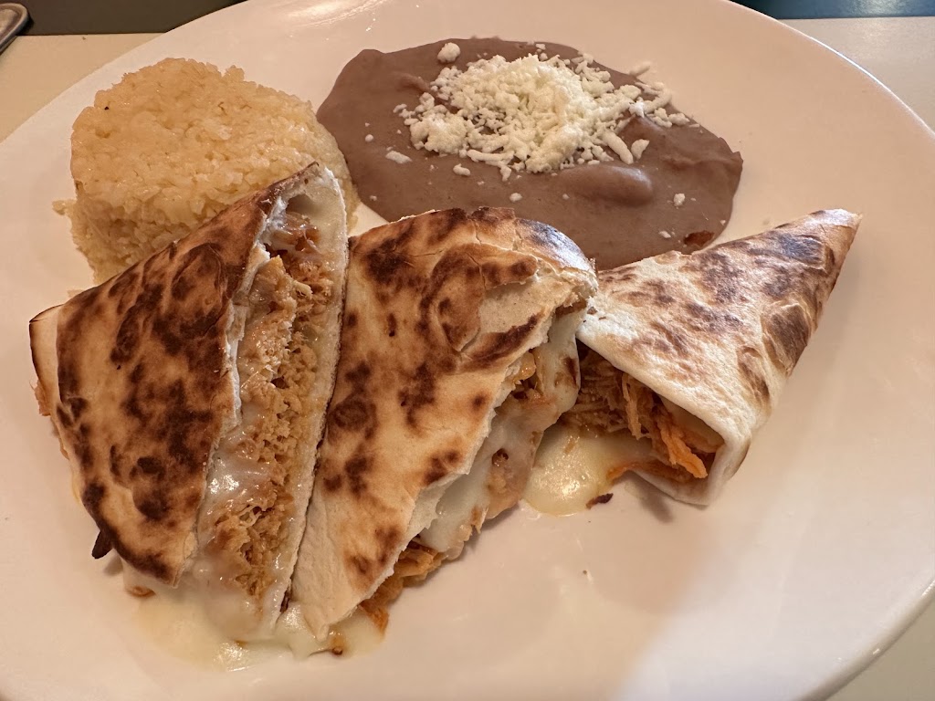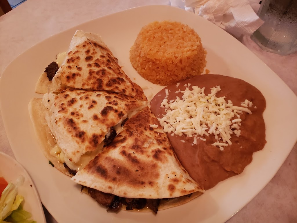 Their version of a quesadilla was shaped more-so like a small calzone. It was filled with cheese and veggies and came with a small side salad and pico de gallo.