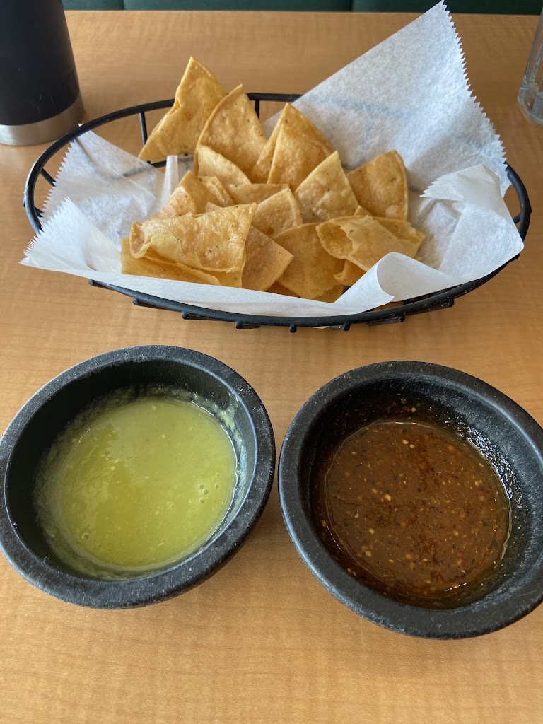 This is a small location that also had a much smaller menu than I am used to at places like this. I got the steak tacos. This was three tacos on corn tortillas. The meat was great it just was laking something to bring it all together. You are also served chips with dipping sauces. The chips were fantastic.