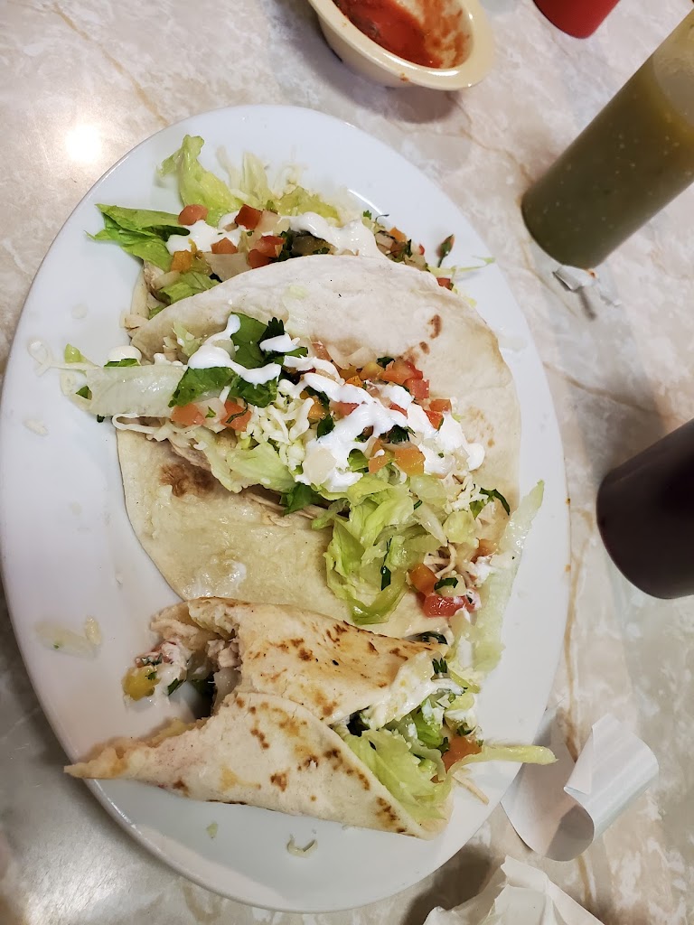 Very good soft chicken Tacos! Fresh, flavorful and ample fillings. The second menu item was delivered as a ground beef (instead of shredded beef) quesadilla with a liquid cheese sauce (not melted cheese topping). Although still a totally edible meal, just not what was ordered or expected.