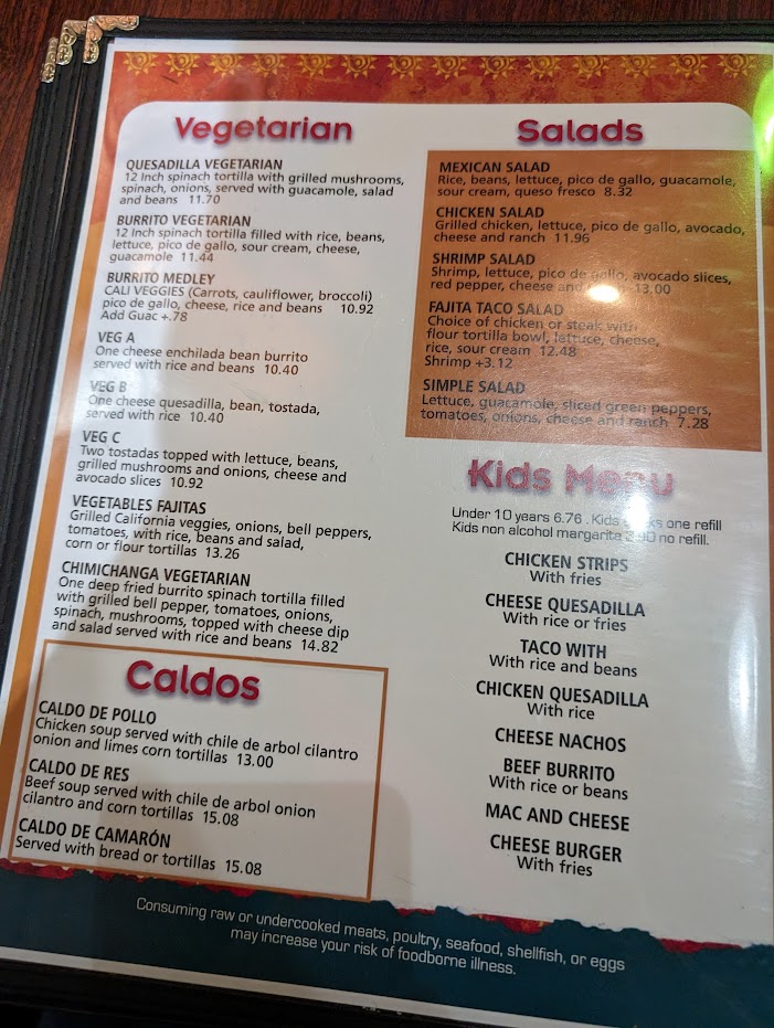 We go here with our kids often and always love the food. There are many options including a vegetarian section, and the kids menu also has a lot of options (our kids LOVE the rice and beans!).