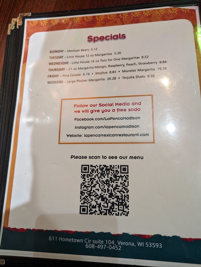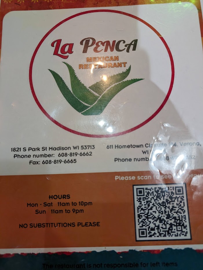 La Penca is a traditional Mexican restaurant in Verona off Verona Avenue. It's just across from Farm & Fleet.
