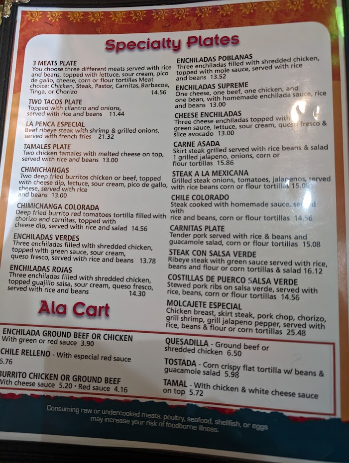 We invite you to consult our special page and do not forget that La Penca has the best giant margaritas in the city and also our fajitas, enchiladas, are the best, Cheers with love!
