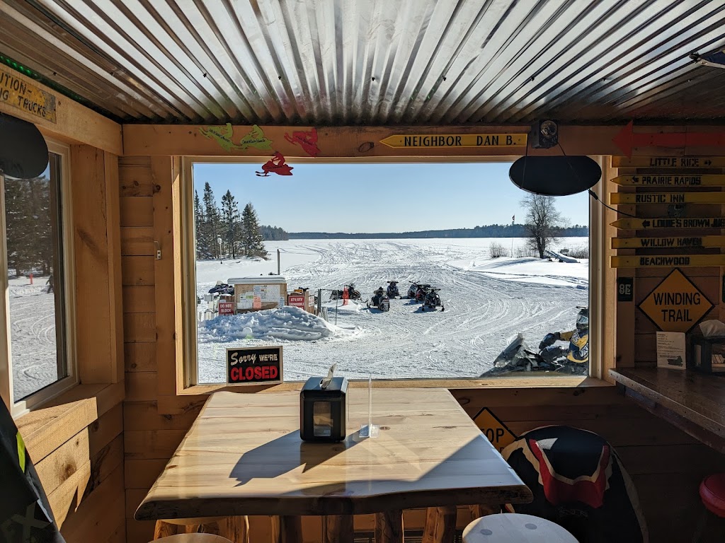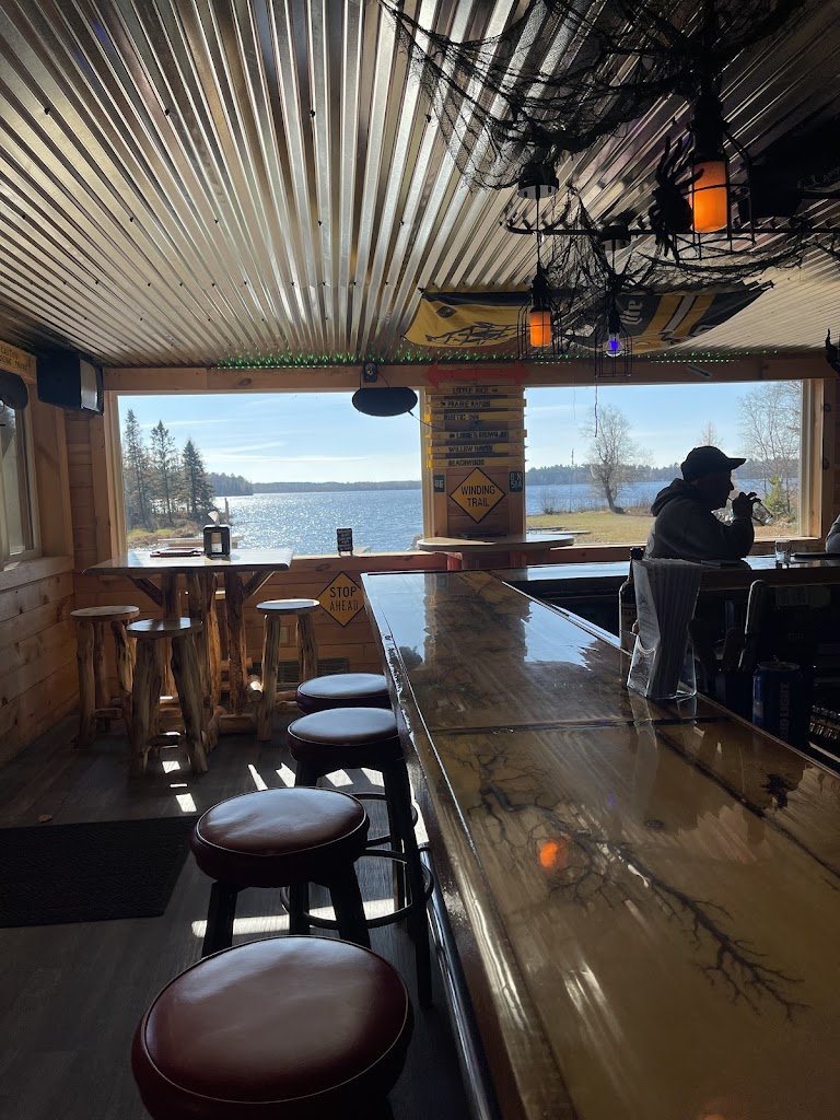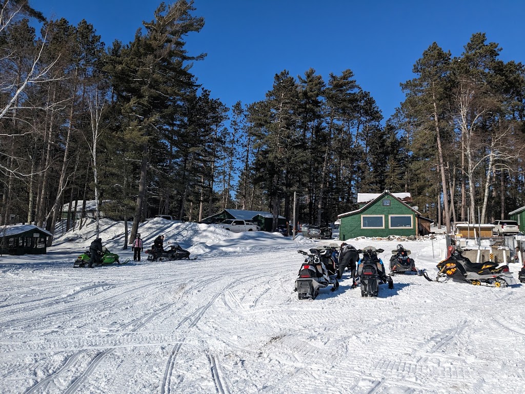 A must stop when snowmobiling in the Northwoods known for it's signature drink the Swamp Water. A cozy stop heated by a wood fire stove and good drinks to warm you up.
