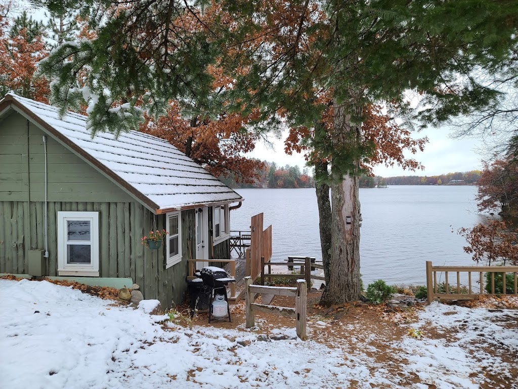 This cabin is so cute right on Lake Nokomis it has 2 bedrooms so cozy for a January visit to the NORTHWOOD, they are pet friendly.