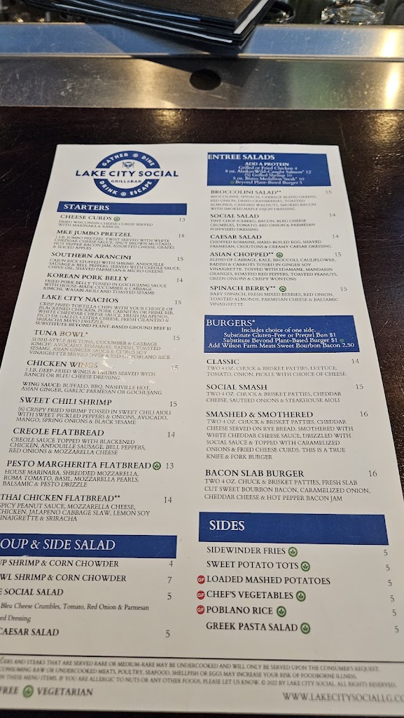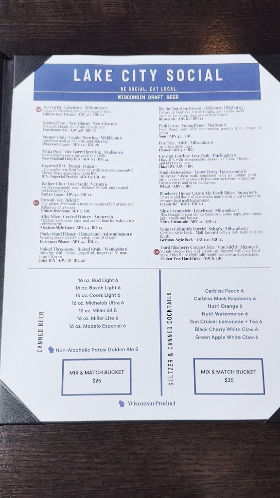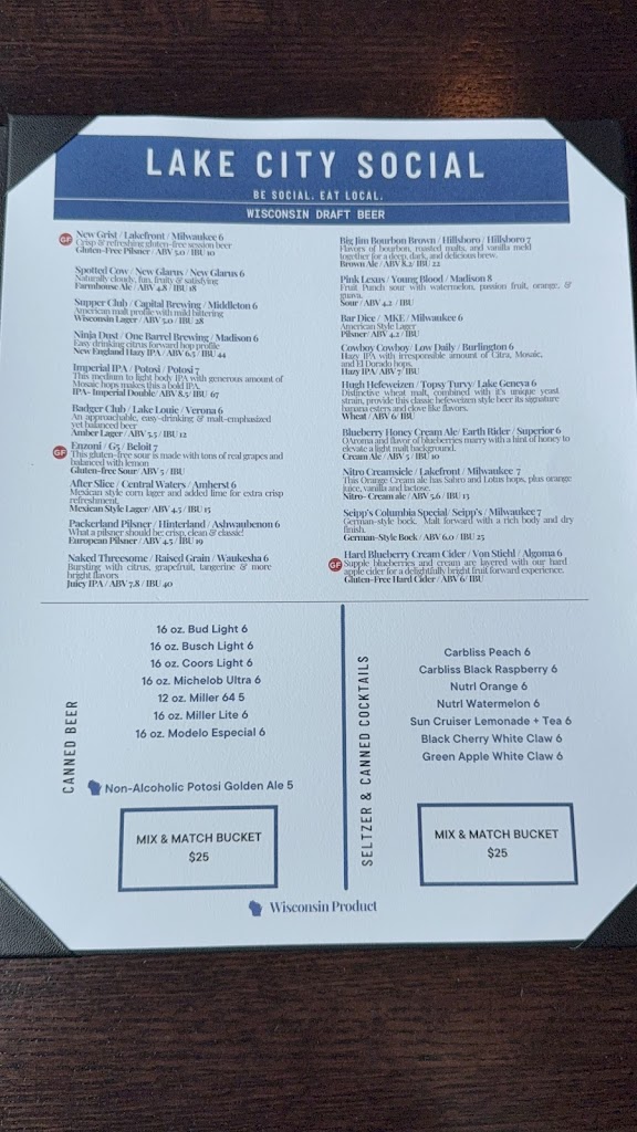 We had a group of 16 at Lake City Social on a Saturday. We are locals, so this was not our first visit, having visited it many times when it was Sprecher's and under its new name and owners. I'll start with the service, quick was excellent for a group our size on a Saturday. We had two waiters and they were attentive throughout.