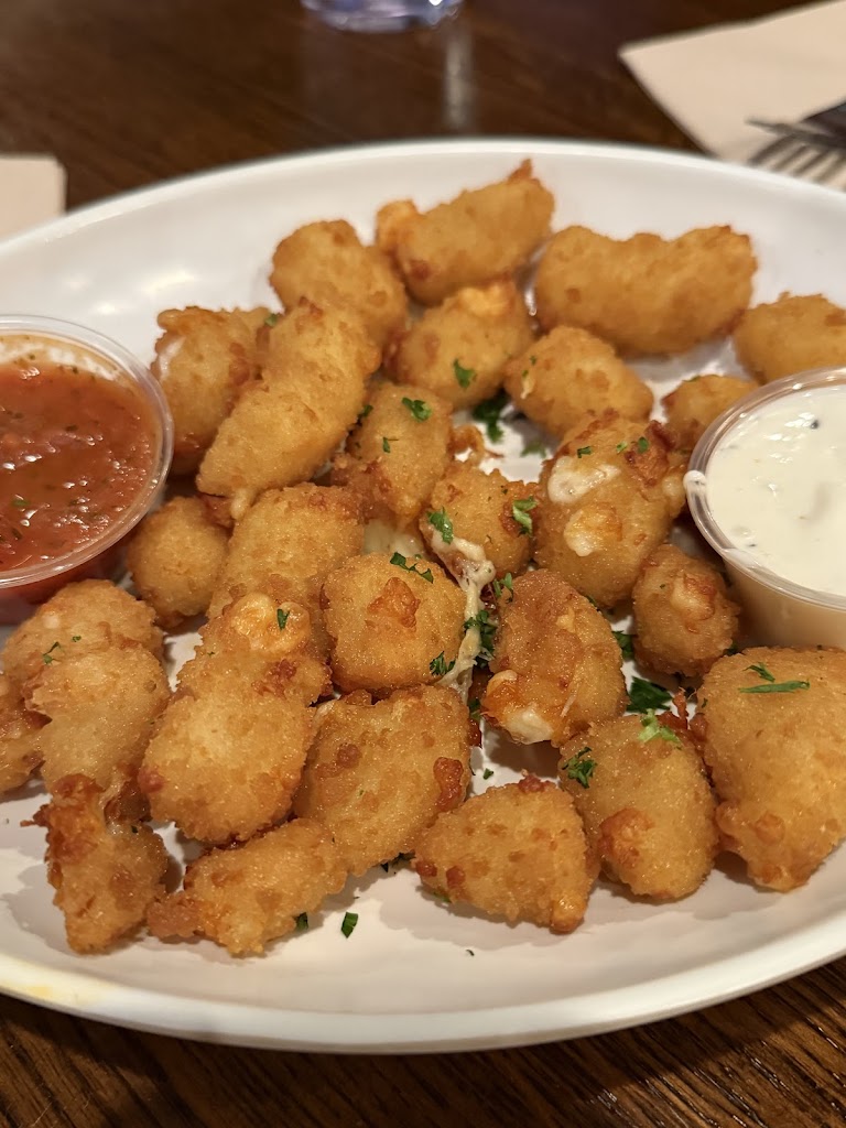 [1] Ordered the raved about $13 Cheese Curds claimed to be better than our loved Culvers and was HIGHLY DISAPPOINTED: hard and solid, not crunchy with gooey cheese as expected. SHOULD HAVE SENT THEM BACK TO THE KITCHEN: absolutely NOT worth the $ that would have been better spent at Culvers for double the Curds made to perfection. With nearly 4.7M views of our reviews, we would gladly post a new Review if the restaurant were to offer a remake of better Curds for a better Review.