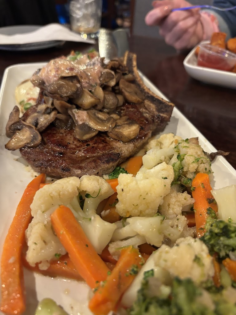 Great ambience, amazing service and a very diverse menu. I got the 14 oz bone in ribeye and was very happy with my meal. I would highly recommend the bruschetta flight for a starter.