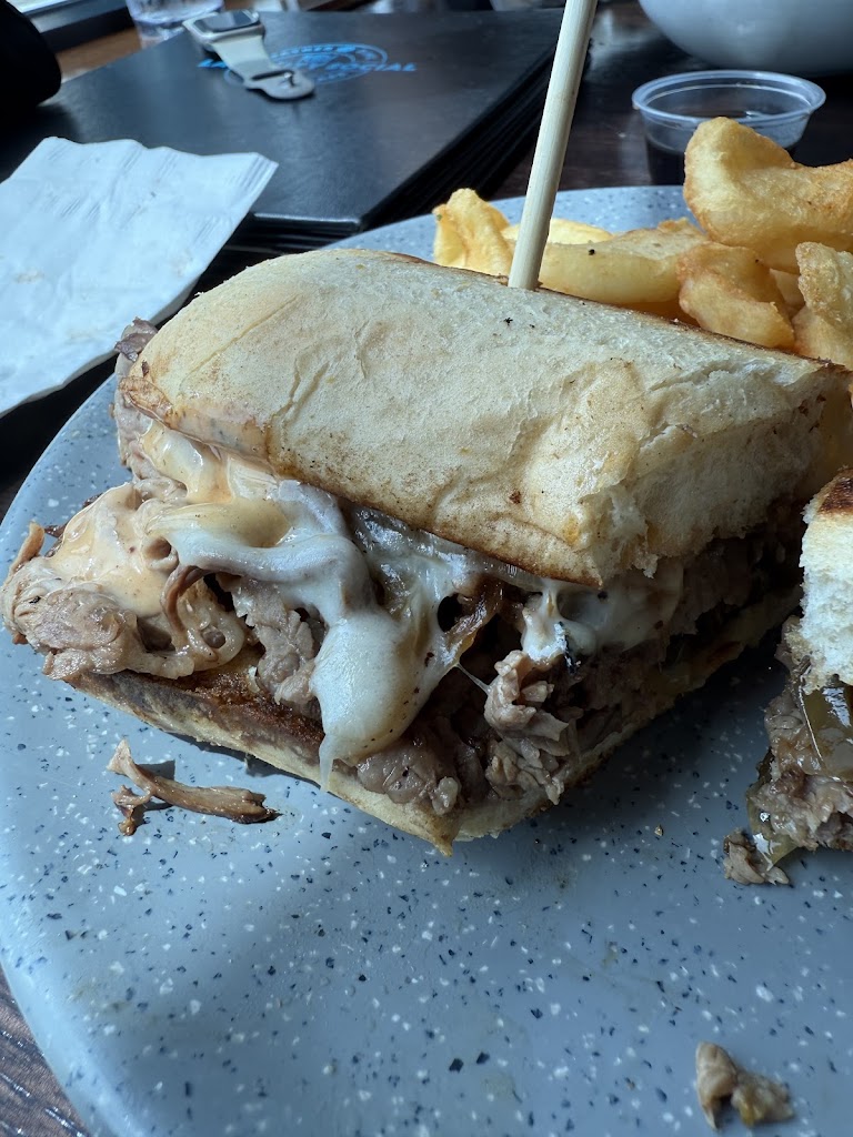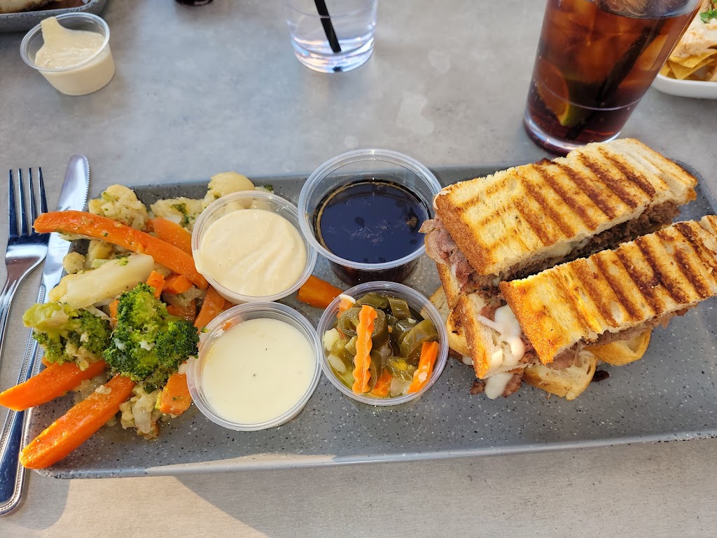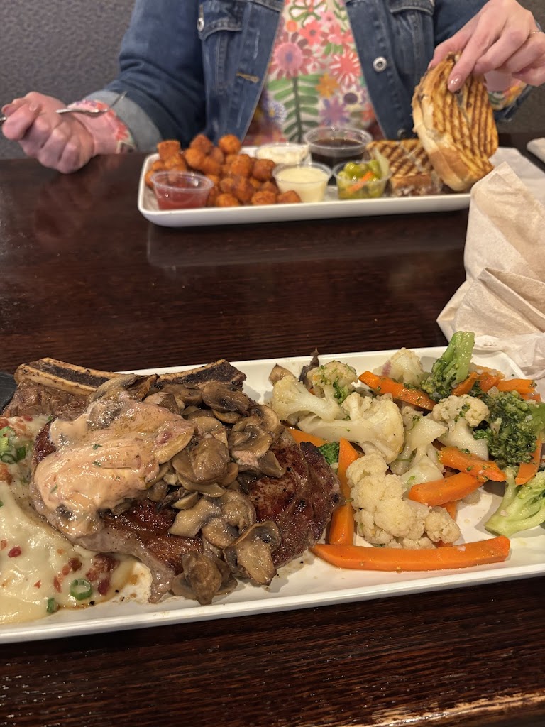 This place was amazing. The food was outstanding. The service was outstanding. I had the aged bone in ribeye. Sarah had the Italian beef Panini. We also had social salad, cheese, curds, and sweet potato curds. The best I’ve ever had. This place is A +++. I can’t say enough about this place
