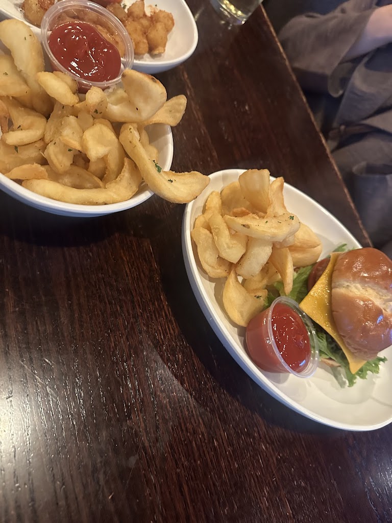 This place was okay but I wouldn't want to go back. I ordered a burger with fries and there person I was with ordered chicken tenders and tots. When we received our food, the sides were on the wrong plates. Luckily we didn't mind sharing plates and didn't make a fuss about it. The food probably would have been tasty but it was luke warm at vest. We were seated near the patio door which kept being open and shut for no reason (it was starting to rain out and people were no longer dining outside) which made it cold inside.