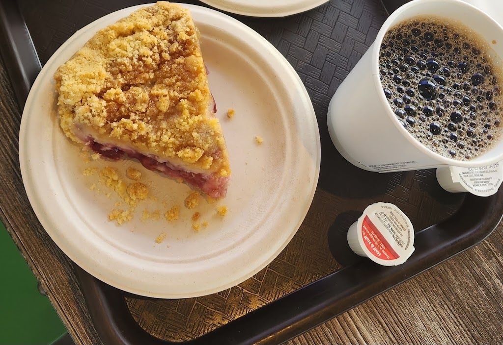 Oh my goodness; the Cherry Crumb pie! Absolutely delicious! I tried my friends' apple crumble pie & that also was incredible. We tried the peanut butter cookies & they were so soft. Incredible place. It is SO cute inside. It has tiny tick tac toe game at the tables. Adorable. The service was incredible! Sweetest staff ever. Good coffee too!