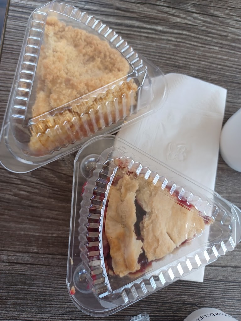 The pies were outstanding w fresh fruit and crispy buttery crust. Definitely worth the short drive from Main Street. Got a blueberry pie to go but after a slice of blackberry raspberry pie, had to get one of those to go as well!