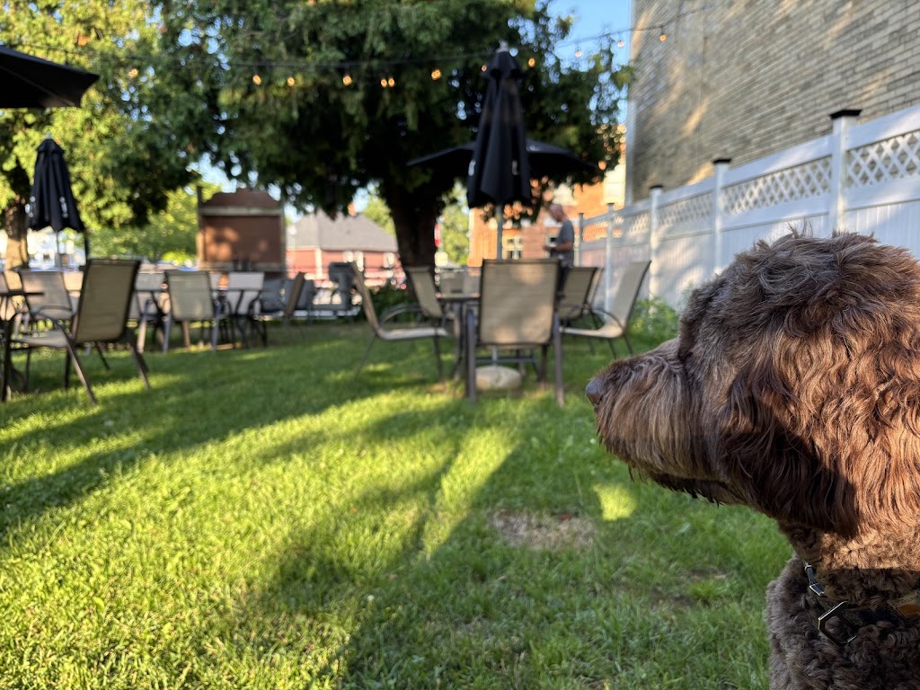 We went for dinner with two teenagers and a large dog. They have a very large grassy outdoor seating area in the lot next door and it was perfect. Umbrellas and some shade trees make it great. they even had a water bowl for our dog.