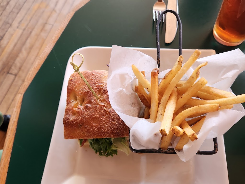 Nice stop right in town. Drinks and food always good. Bonus in the summer is the farmers market across the street. They have a nice patio too i just never make it past the bar