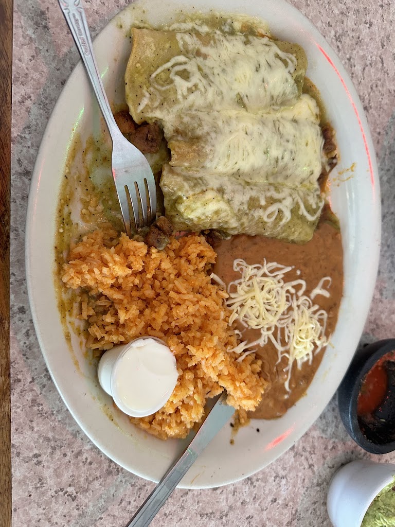 I went for the first time during lunch time (had 3 Enchiladas Dinner with Al Pastor Meat, Green Sauce, and (2) strawberry margaritas). My Sister In Law Had (3 Taco Dinner with steak meat, guacamole + chips, (2) Margaritas ). I wouldn’t judge the tacos by the picture alone as my sister law has to make special request for her dietary restrictions. But she did say her food was just as delicious as mine. I would have scraped the plate clean if I already hadn’t almost try to hurt myself to make it to the last bite with a full on food baby - as it was that good.