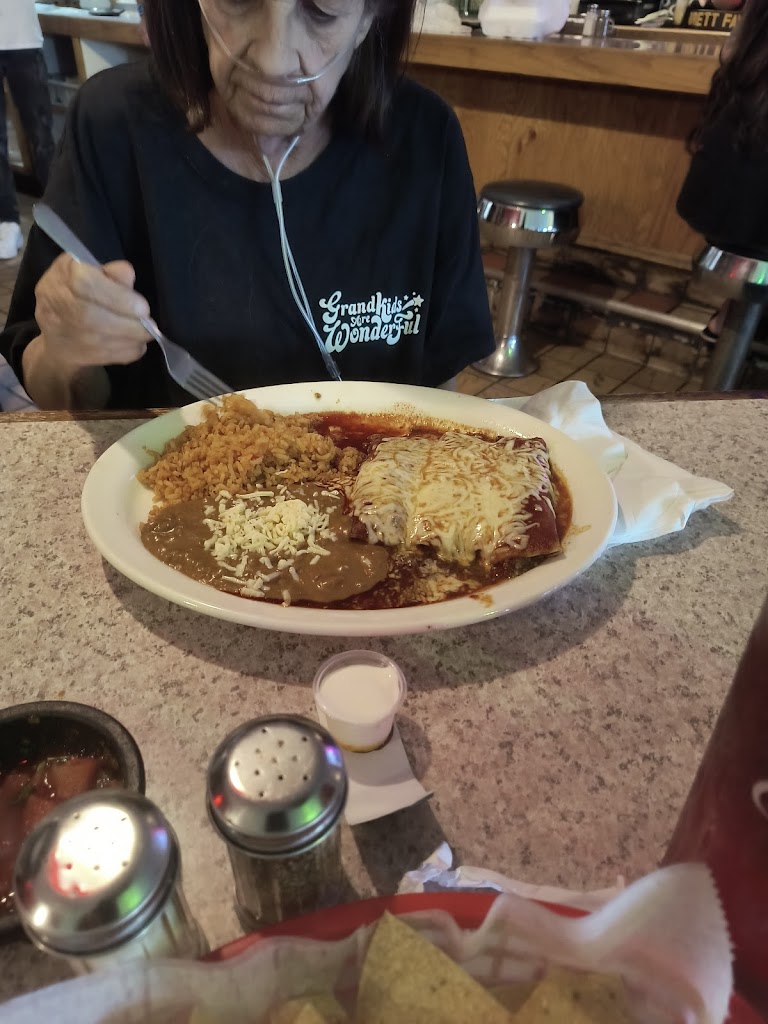 The old elderly lady has a terrible attitude she walks around the place tiredly and broke down looking her back is bent over as if her legs are about to give out at any given second food is ok and the customers stare at you when walking in as if you’re unwelcomed in this whole in the wall that can use some modern updating the chairs barely held me up and I’m 5”1 140 I will never eat here again burrito was delicious although