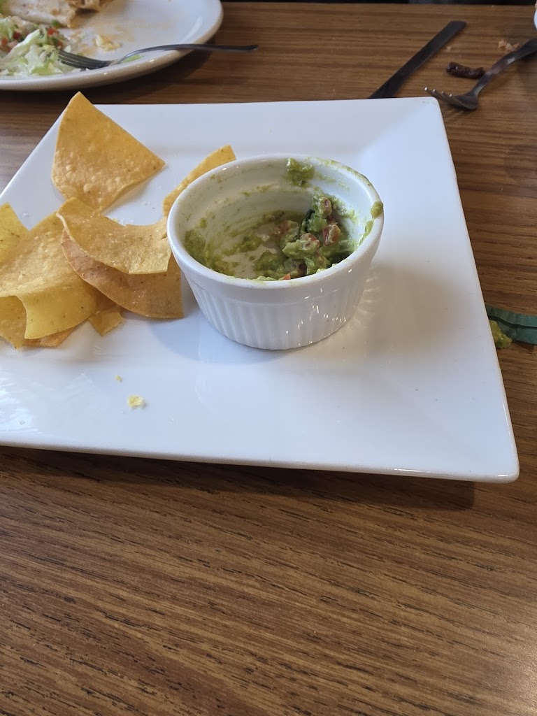 This small dish of guacamole was $10.50. Salsa was tomato water. Chips seemed stale (or the fryer oil needs changing).