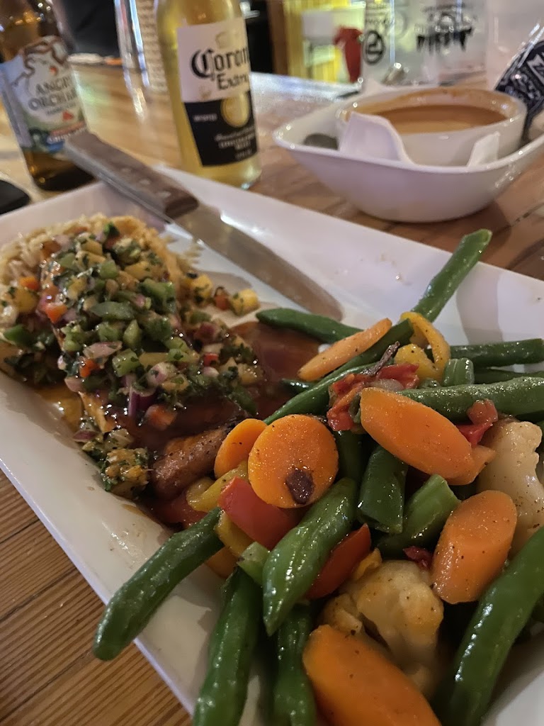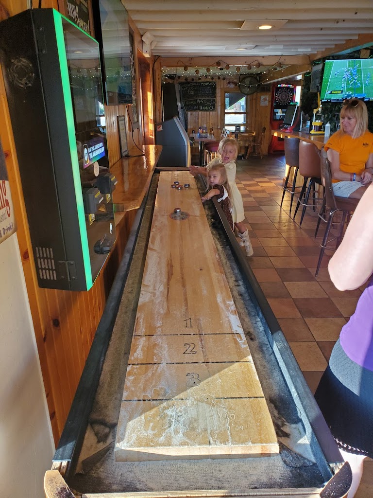 Good food. My kids love the place for its games. They have bar shuffleboard inside when it gets too cold for cornhole.