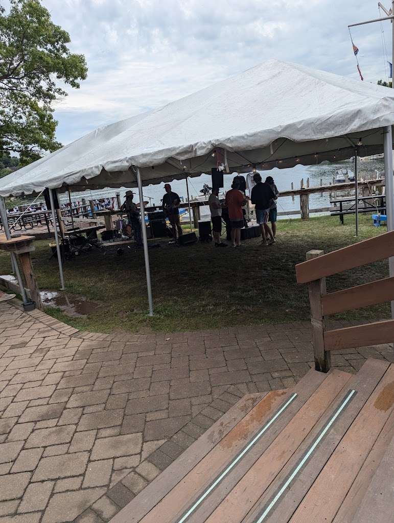 We were boating and stopped in with a group and had the BEST pizza. Everyone at our table loved it. We also had a really great server. He was friendly, efficient and kept us entertained while it stormed.